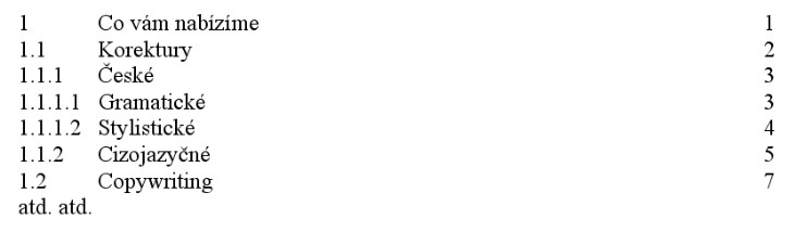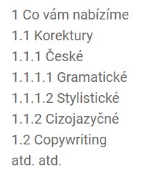 - za poslední číslici se neklade tečka (píšeme tedy 1.1, 1.1.2, nikoli 1.1., 1.1.2.)